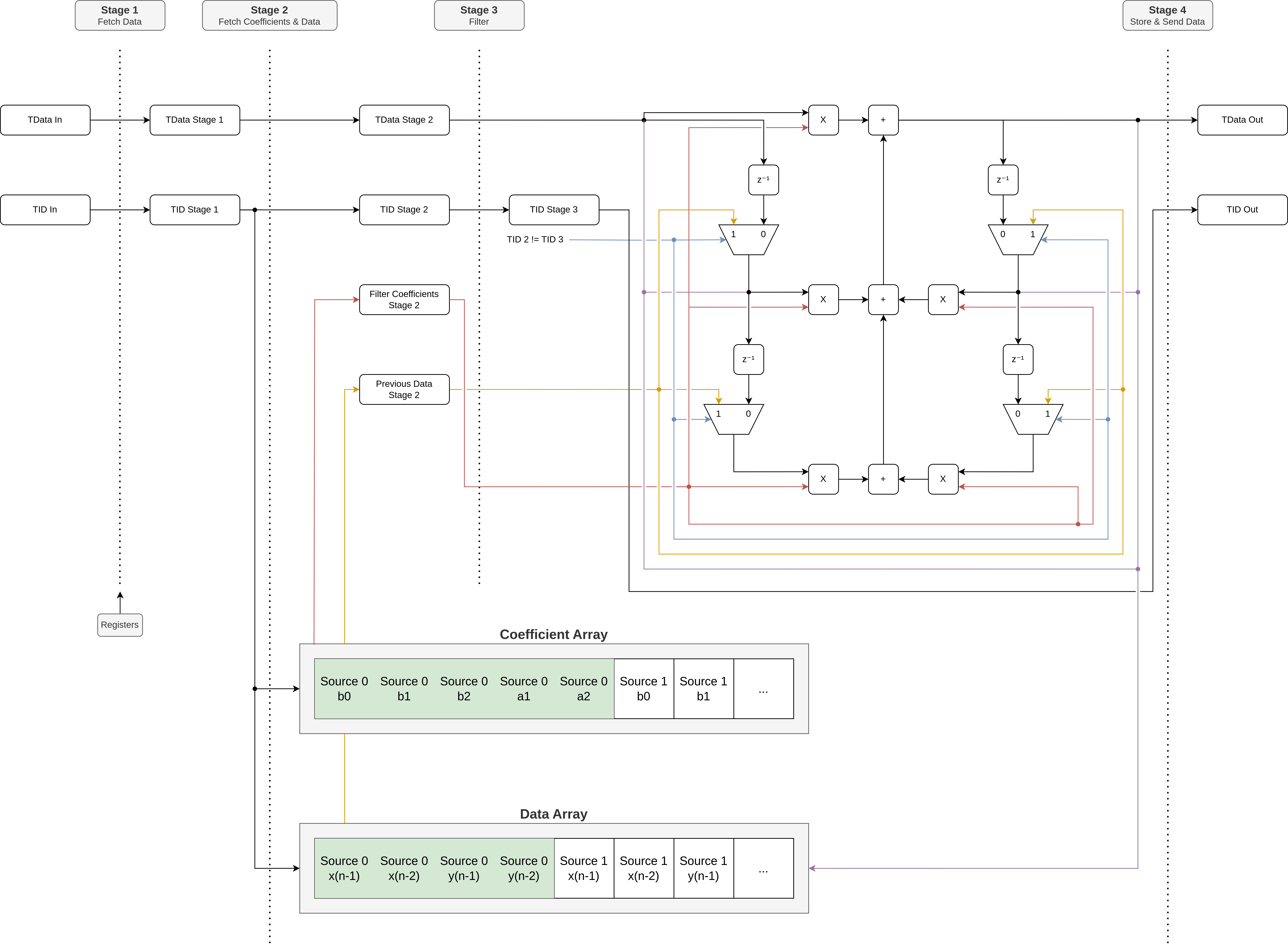 a1, a2, b0, b1 and b2 signals are the coefficients for a normalized biquad filter and the channel_adress indicates for which source.