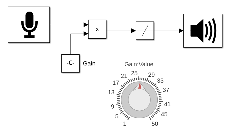 We also want to add some audio effects to the audio pipeline. The chosen effects are saturation, echo and ring modulation. We tested the saturation and echo first in Simulink before implementing it in VHDL.
